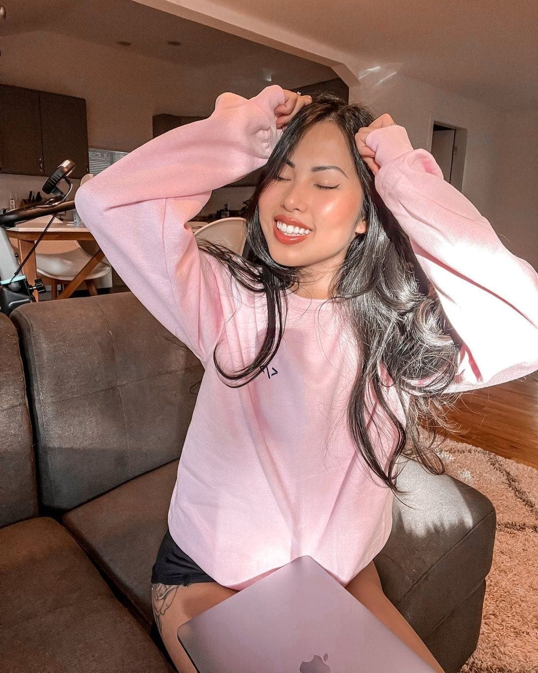 The sweatshirt features a relaxed fit, allowing for ease of movement and versatility in styling. Whether you prefer a casual, laid-back look or a more put-together ensemble, this sweatshirt effortlessly adapts to your personal style. Pair it with your favorite jeans, leggings, or even a skirt to create a variety of fashion-forward outfits.